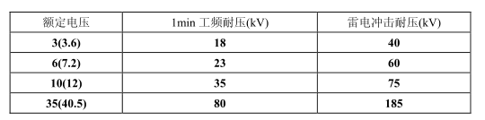 2)介電強度:每一段母線槽出廠前均經受1分鐘工頻耐壓試驗,工頻耐壓及雷電沖擊耐壓數值,見表