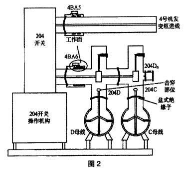 (2)查看處理斷線故障前,檢修人員對(duì)GIS開關(guān)站設(shè)備功能把握不全面,特別是GIS各氣室距離方位不清楚,在制定安全技能措施時(shí)考慮不周全,沒有將與之相連的D母線槽停電,是導(dǎo)致事故產(chǎn)生的主要原因。