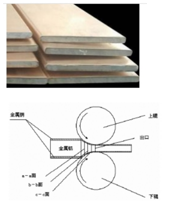 銅包鋁的軋制工藝是經過二輥可逆式軋機來完結的,在出產加工進程中,銅包鋁棒材先進入輥縫,經過軋輥的揉捏及摩擦效果使銅鋁棒材能夠產生塑形變形。銅鋁在延展進程中表面會產生撕裂及擠伸,初步完結機械結合。在軋制進程中還要經歷咬入、拽入、安穩階段以及軋制結束等四個進程。下圖為銅包鋁棒材的軋制圖: