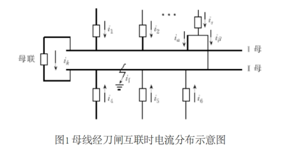 b.某一單元倒閘進程中,兩把刀閘都已閉合,而保護設(shè)備沒有切換入互聯(lián)情況。由于此時兩條母線槽現(xiàn)已將兩把刀閘連在一同,部分電流流過刀閘而不經(jīng)過母聯(lián)TA,假設(shè)仍然判分差電流選擇切除母線槽,將降低保護靈敏度或延伸缺點切除時間。