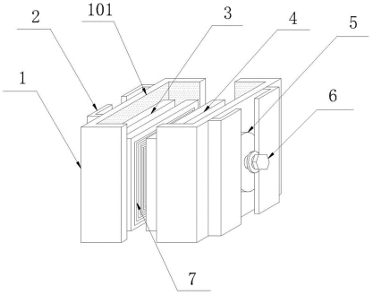 2.依據權利要求1所述的一種環氧樹脂澆注母線槽聯接器,其特征在于,所述鋼架(1)的內周圍面設置有絕緣層(101),所述絕緣層(101)的資料為環氧樹脂。