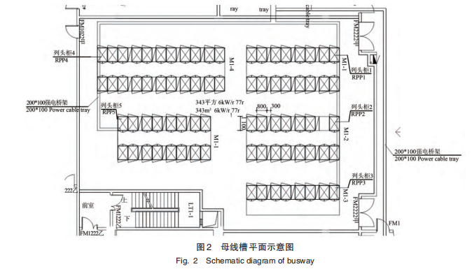 6.銜接盒接線盒能夠在母線槽主體上裝置,接線盒內(nèi)置操控空開及給機(jī)柜供電的插座。現(xiàn)在職業(yè)上,接線盒在母線槽主體上裝置,大多數(shù)均支持熱插拔方法,靈敏卡位固定,方便隨時(shí)為擴(kuò)容負(fù)載供給電氣銜接。接線盒在母線槽主體上詳細(xì)裝置方位職業(yè)上基本由兩種設(shè)計(jì)狀況,固定裝置和靈敏裝置,Sch?neider 等供應(yīng)商選用固定式方位裝置,即母線槽主體上每隔 600 mm 預(yù)留一個(gè)裝置孔位供給接線盒裝置。PDI、Startline等供應(yīng)商可在主體上任何方位裝置。對(duì)不同尺度規(guī)格機(jī)柜擺放而言,無疑后者愈加合適機(jī)房的設(shè)計(jì)。 2. 7.監(jiān)控模塊監(jiān)控模塊分為結(jié)尾及主控單元兩部分。結(jié)尾單元為機(jī)房母線槽通過在端部饋電模塊、接線盒等部件裝備智能化電量?jī)x等電氣收集模塊,可即時(shí)收集功率、電流、電壓等電氣數(shù)據(jù)。主控單元包含硬件主控單元和軟件辦理平臺(tái)。機(jī)房母線槽設(shè)計(jì)本文以某約 300 平米的電力機(jī)房為例,進(jìn)行母線槽計(jì)劃和傳統(tǒng)列頭柜計(jì)劃設(shè)計(jì)比較。該區(qū)域可安置 9列機(jī)柜,每個(gè)列頭柜對(duì)就近兩列機(jī)柜供電,每個(gè)機(jī)柜尺度為800 mm×1 100 mm。如圖2所示。