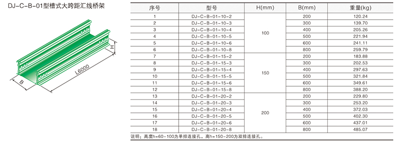 大跨距橋架分梯級(jí)式、槽式、托盤式三種型號(hào)。A型、B型二種類別,支撐間距為6m,當(dāng)跨距大于6m時(shí)可接受特殊訂貨。