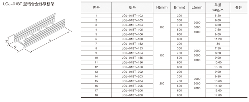 鋁合金電纜橋架在某種結(jié)構(gòu)形式中無其它結(jié)構(gòu)形式中的某-種產(chǎn)品類別,選型可作代用表示。例如:在LQU-CC型槽式鋁合金電纜橋架結(jié)構(gòu)形式中,無鋁合金配線橋架中的LPC-03D, 即表示為LFC-CC-03D。